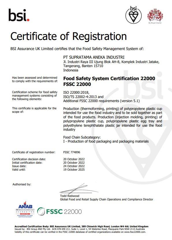 Food Safety System Certification 22000, adalah standar internasional yang diakui untuk sistem manajemen keamanan pangan.